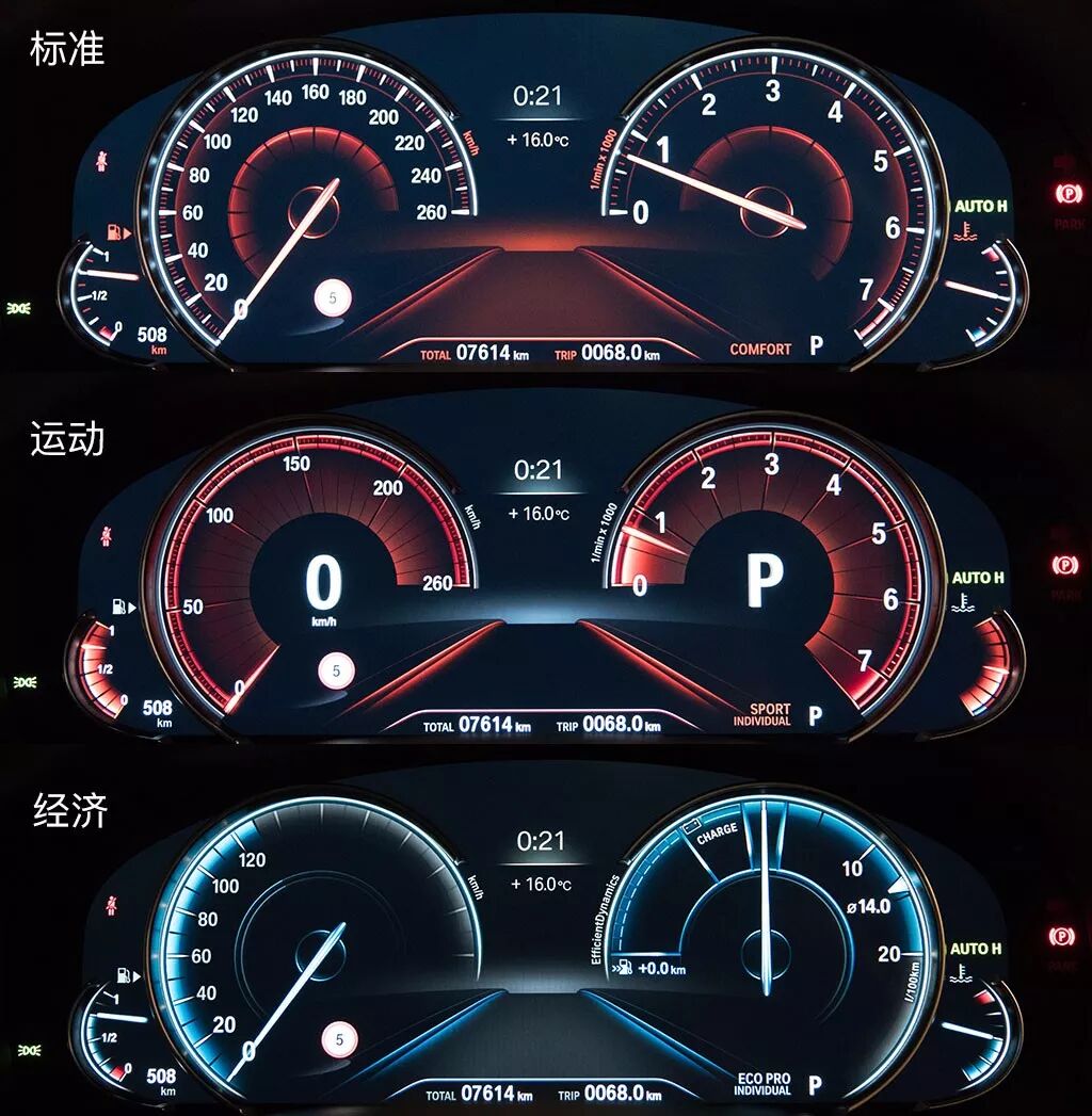 三套主題分別對應舒適、運動以及ECO三種不同的駕駛模式,在切換時,儀錶盤的風格會自動產生變化。